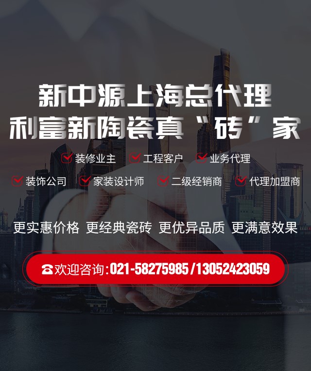 上海利富新陶瓷有限公司創立于2003年,是一家集倉儲、配送、銷售工程、招商、服務為一體化的專業瓷磚銷售服務公司。利富新始終致力于為消費者提供環保、藝術、高品質、個性化的家居空間解決方案,是中國陶瓷馳名品牌“新中源”陶瓷在上海市的總代理。
